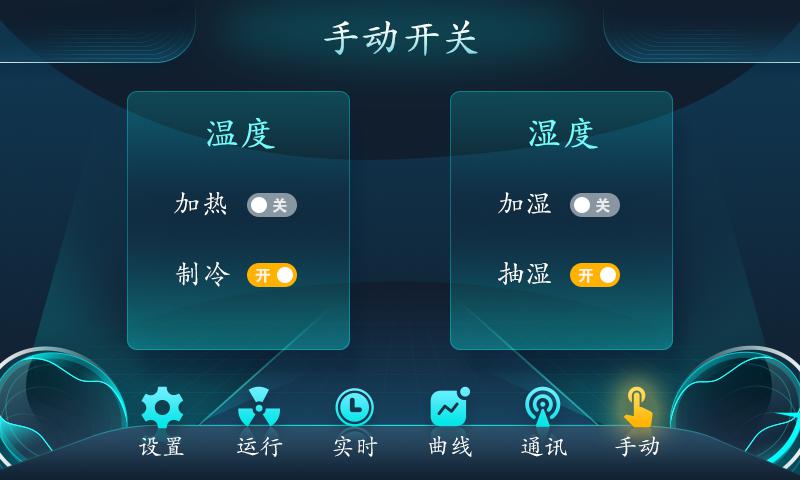 温度和湿度手动开关,当需要手动打开或关闭输出信号时,可在此界面进行设置。