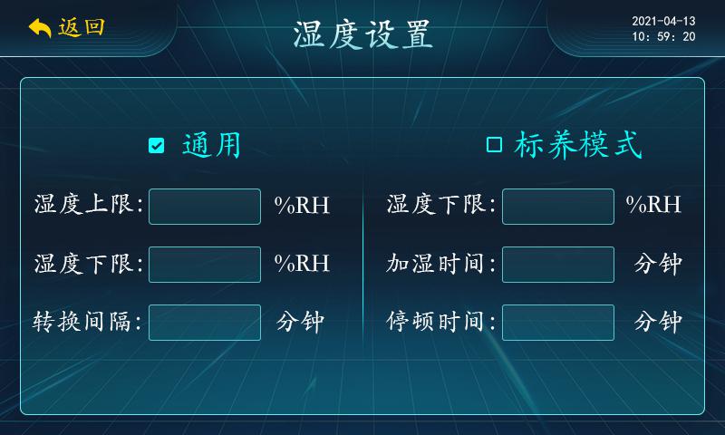 2.1 湿度设置分为通用和标养两种模式,两种模式为单选。