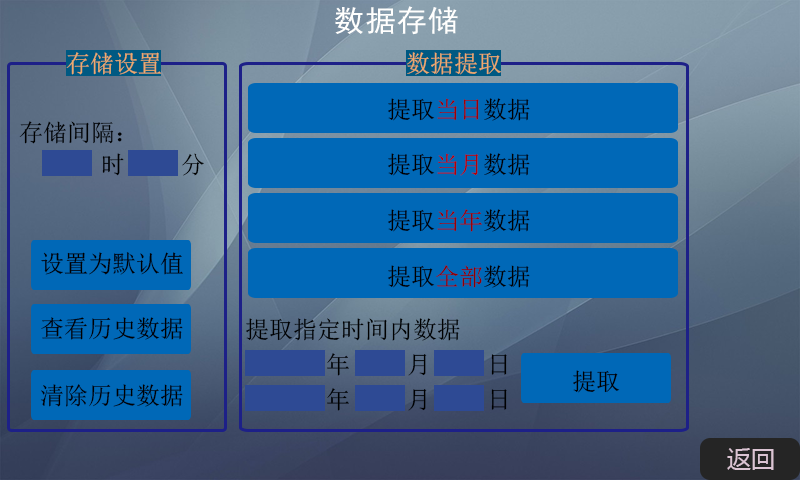 4、数据自动记录和打印,控制器自带的存储器可自动存储长达2年的数据,方便客户查询和打印,数据存储时间可手动设置,小为每分钟记录一次,查看历史数据功能分为提取当天、当月、当年数据。大限度满足单位不同的需求。