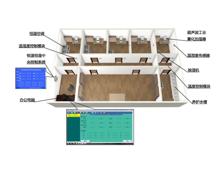 国家新标准《普通混凝土力学性能试验方法标准》GB/T50081-2002对标准养护室试块养护要求与ISO试验方法相同,要求温度20±2℃,相对湿度为95%以上,标养室应为雾室,试件表面保持潮湿,不能直接喷水或冲淋。按此规定要求,我公司使用液晶屏或数码管温湿度控制仪、进行防潮改装后的空调等加热制冷设备、超声波工业雾化加湿器来达到温度和湿度恒定,以满足国标要求。