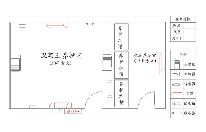 标准混凝土养护室基本配置(30㎡为例,要求:温度20℃,湿度≥95%)